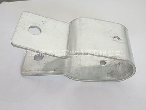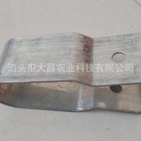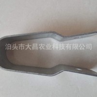 10、压膜卡:用在两个方面,一是将薄膜卡在卷膜杆上;二是将薄膜卡在棚头的拱管上。不易伤薄膜,又能固定好。